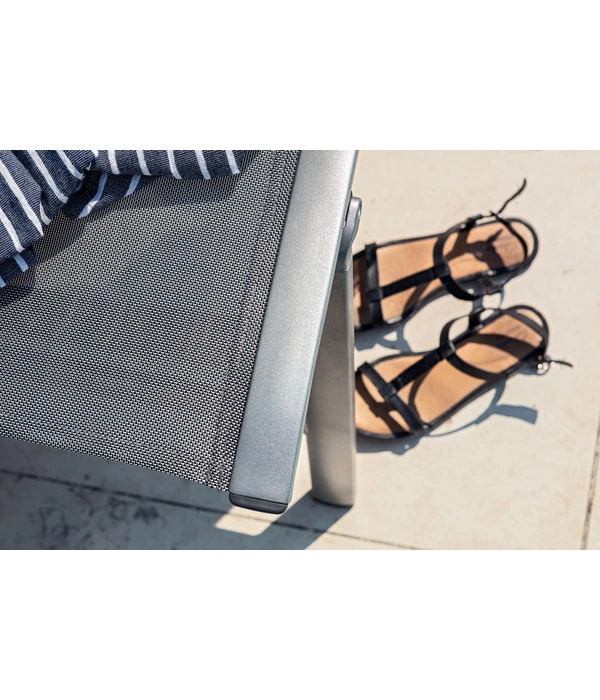 Verlassen Sie sich bei Ihrer neuen Entspannungsoase neben durchdachten Funktionen vor allem auch auf die Qualität der verwendeten Materialien. Denn die Dehner Relaxliege Chicago verfügt über ein äußerst stabiles, dabei jedoch angenehm leichtes Gestell aus Aluminium. Das ist Qualität, an der Sie lange Freude haben werden. Genauso wie mit der Bespannung. Denn sie besteht aus Textilene, einem modernen, höchst strapazierfähigen Material, das zudem witterungsbeständig und schnelltrocknend ist. Darüber hinaus bietet es einen weiteren angenehmen Vorteil: Textilene ist sehr formstabil. Das bedeutet, dass es sich während der Nutzung angenehm an den Körper anpasst und danach wieder in seine Ursprungsform zurückbewegt. Eine Belastbarkeit von 150 kg macht den Reigen der Qualitätsaspekte Ihrer Dehner Gartenliege Chicago schließlich perfekt.