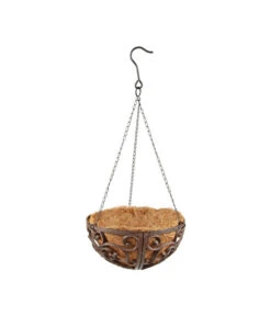 Dehner Gusseisen-Hängeampel Katalonien mit Kokoseinlage, rund, rost, ca. Ø30/H15 cm
