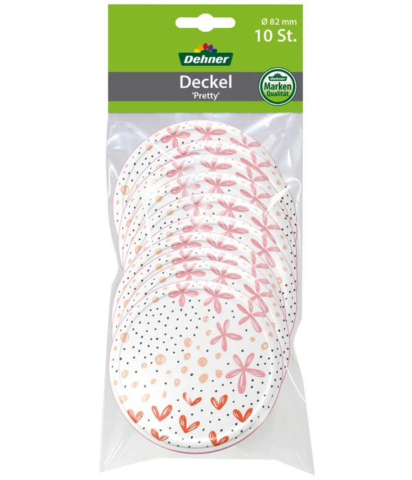 Hobbyköche wissen sicherlich bereits, wie viel Spaß es macht, unterschiedliche Speisen einzukochen oder einzumachen. Wenn Sie es auch lieben, in der Küche kreativ zu sein, dann eignet sich der Dehner Schraubdeckel Pretty in idealer Weise dafür, Ihre wundervoll befüllten Einkochgläser sicher zu verschließen und die süße, deftige oder saure Speise geschützt am Wunschort zu verwahren. Ganz gleich, ob es Gelees, Grützen, Marmeladen, Früchte oder Suppen betrifft, die Deckel garantieren Ihnen ein optimales Verstauen in Schränken und Regalen.