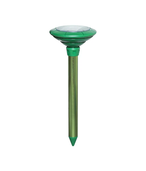 Sie haben Probleme mit Maulwürfen oder Wühlmäusen im Garten? Dann ist der Dehner Solar Maulwurf- Wühlmausvertreiber in Markenqualität die ideale Hilfe für Sie. Er verjagt die Kleintiere, ohne ihnen zu schaden, indem er alle 20 Sekunden Schallwellen aussendet. Dafür benötigen Sie keinerlei Kabel oder Batterien wie für viele andere Gartengeräte, denn der Maulwurfschreck arbeitet mit Sonnenenergie. Eine Solarzelle und ein integrierter Akku sorgen für den dauerhaften Betrieb (kein Ausschaltknopf vorhanden). Der Maulwurfvertreiber ist für den Garten mittlerer bis großer Größe (max. 800 m²) geeignet.