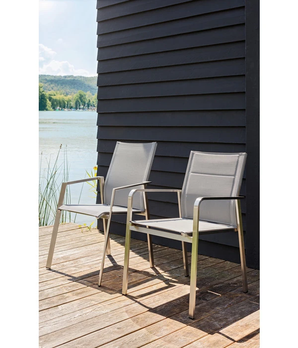 Sitzen Sie edel, bequem und äußerst hochwertig – im Dehner Stapelstuhl Nantes mit Edelstahl-Gestell
