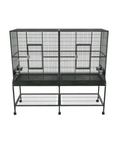 Sie haben nicht nur einen Vogel, sondern gleich zwei, drei oder mehr? Dann sollten Sie den geselligen Piepmätzen auch das passende Heim zur Verfügung stellen. Denn Ihre gefiederten Freunde brauchen neben Artgenossen, abwechslungsreichem Spielzeug und der täglichen Möglichkeit zum Freiflug auch ein Zuhause, das viel Platz bietet. Ideal für kleine Ziervögel wie Sittiche und Schwarzohrpapageien ist da die Dehner Voliere Aurelio. Der geräumige Doppel-Vogelkäfig aus pulverbeschichtetem Metalldraht und Metallröhren steht auf einem praktischen Rollwagen zum Hin- und Herschieben und kann bei Bedarf mit einem Trenngitter in zwei Einzelvolieren verwandelt werden. Herausziehbare Kotgitter machen die Reinigung zum Kinderspiel.