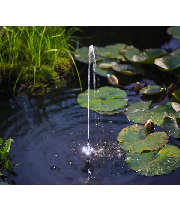 Ein ganz besonderes Element der Gartengestaltung: Das solarbetriebene System Palermo von Esotec verursacht keine Stromkosten, ist schnell aufgebaut und beeindruckt den Betrachter. Die vier Wasserdüsen bringen unterschiedliche Fontänen hervor, welche im Dunklen von einem LED-Ring beleuchtet werden. Die maximale Förderhöhe des Wassers beträgt 90 cm.