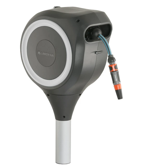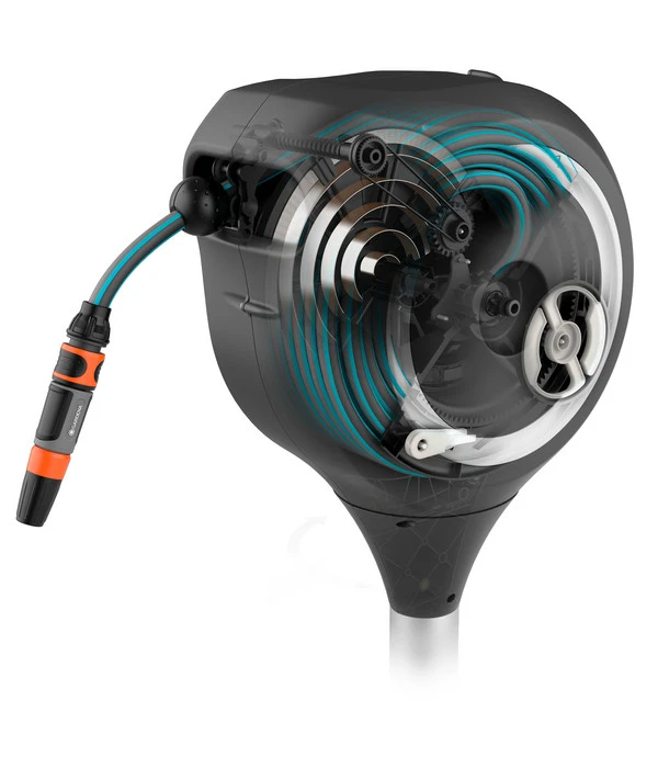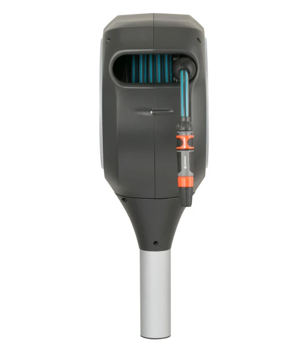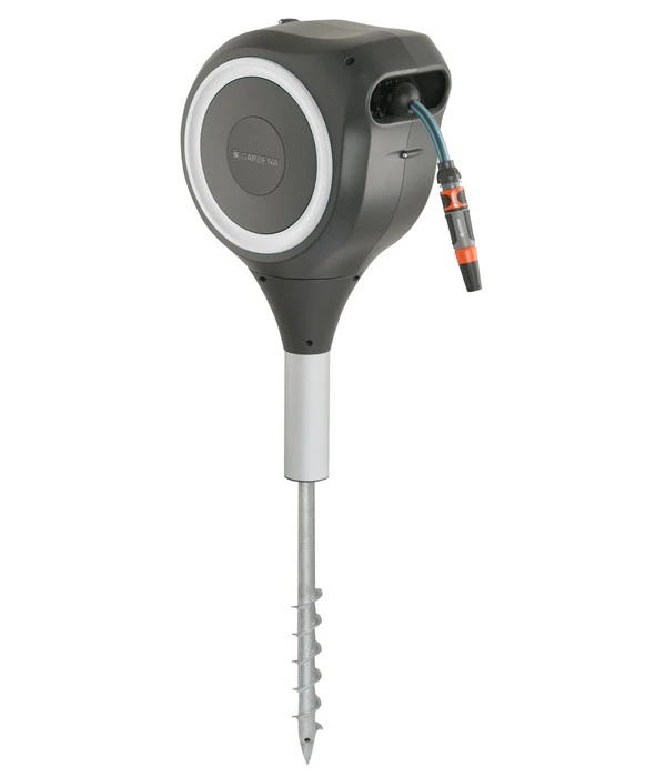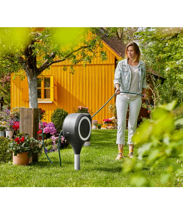 Sind Sie es auch leid, nach der Bewässerung Ihres Gartens den Gartenschlauch mühsam wieder per Hand aufrollen zu müssen? Dann ist die Garten-Schlauchbox RollUp S von GARDENA genau das Richtige für Sie! Die kompakte Schlauchbox bewahrt den eingebauten Schlauch sauber und sicher für Sie auf und durch ihre Drehbarkeit um 360° macht sie die Gartenbewässerung zudem zum Kinderspiel. Zur einfachen Befestigung in Ihrem Garten wird die Garten-Schlauchbox ganz einfach mit dem beiliegenden Erdspieß in die Erde gesteckt und lässt sich somit auch sehr leicht wieder umplatzieren, falls Ihnen der momentane Standort nicht mehr zusagt.
