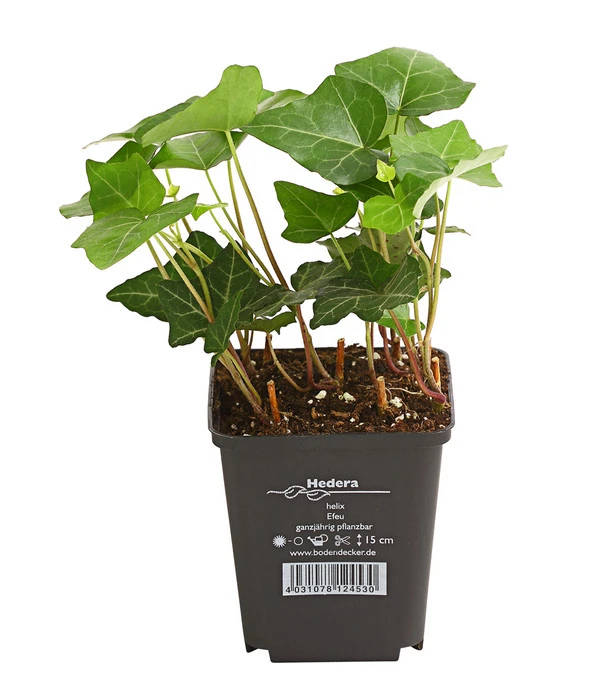 Der gewöhnliche Efeu findet sowohl als Bodendecker als auch als Kletterpflanze z. B. bei der Begrünung von Gebäudefassaden, Pergolen oder Mauern Verwendung. Die Blätter der winterharten, immergrünen Pflanze besitzen eine markante Form mit drei Spitzen sowie Adern an der Unterseite. Es gibt viele verschiedene Sorten mit unterschiedlicher Blattzeichnung, -färbung und -form.