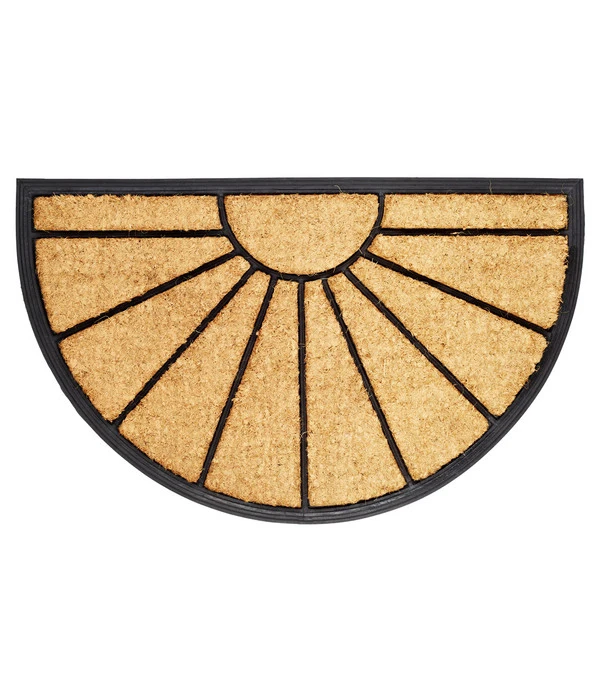 Die Fußmatte von Hamat hat die Form eines Halbkreises. Durch die schwarzen Streben aus Gummi, die von der Mitte nach außen gezogen sind, entsteht das Bild einer aufgehenden Sonne. Damit ist die nützliche Fußmatte von Hamat ein toller Hingucker. Die dunklen Gummistreben sind aber nicht nur optisch ansprechend, sie sorgen zugleich für sicheren Tritt auf der FERTIG Hamat Fußmatte Bombay. Durch die gummierte Unterlage bietet die Schmutzfangmatte auch auf glatten Böden guten Halt und macht so den sicheren Übergang vom Außen- in den Innenbereich problemlos möglich.