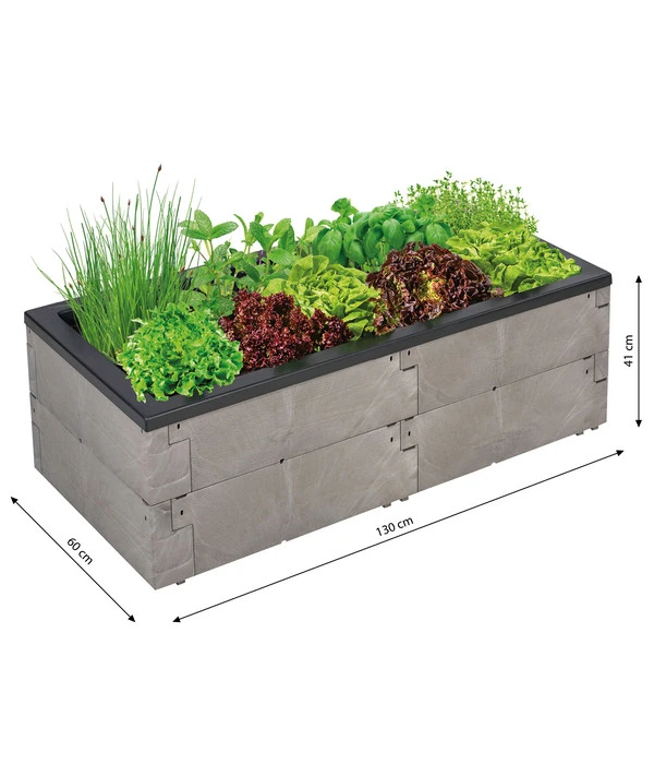 Bei der Produktion des Pflanzkastens wird auf Umweltverträglichkeit geachtet und das Material ist garantiert BPA- und schwermetallfrei. So eignet sich der Kasten auch bedenkenlos für die Anpflanzung von Lebensmitteln. Durch das vielfältige Systemzubehör dieser Produktreihe kann die Höhe bis zu einer Hochbeet-Höhe für eine angenehme Körperhaltung beim Bearbeiten erweitert werden. Lassen Sie Ihre Pflanzen ästhetisch ansprechend in diesem schönen Blumenkasten in Holzoptik sprießen und frisches Grün in Ihr Zuhause bringen.