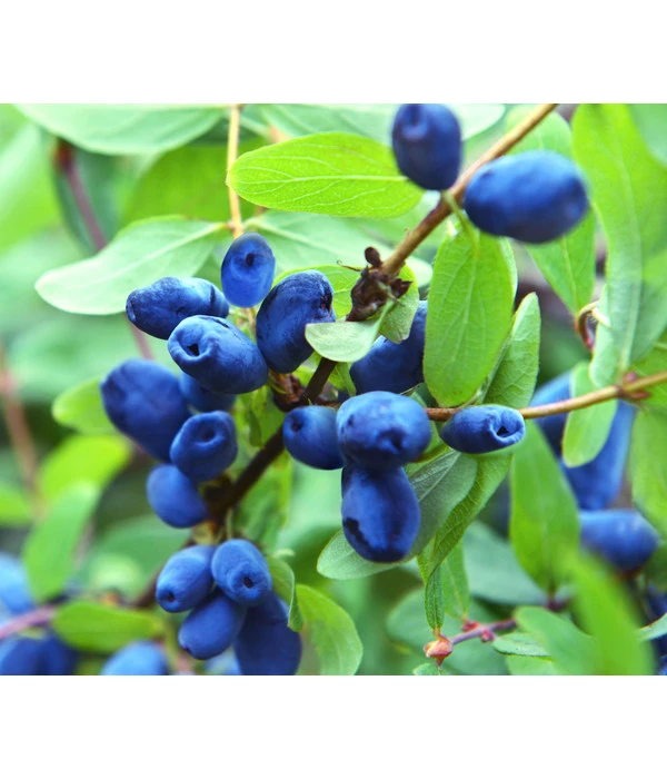 Die sibirische Blaubeere stammt von der russischen Halbinsel ‚Katschatka‘ und aus Sibirien, wo es bekannter Weise sehr kalt ist. Sie ist deshalb sehr gut für schwierige Lagen geeignet. Die Gartenpflanze, die auch als Honigbeere oder Haskap-Beere bekannt ist, kommt mit jeglichen Böden und auch Frösten klar. Maibeere blüht bereits im März und ist trotzdem nicht Spätfrost gefährdet. Selbst die Knospen sind also frostverträglich. Die Blüten sind pastellgelb bis cremefarben und trichterförmig. Im Geschmack ähnelt die sibirische Blaubeere den Heidelbeeren, äußerlich allerdings gar nicht. Die Beeren sind länglich, blau bereift und sehen aus, wie umgestülpt. Sie sind sehr süß, aromatisch und enthalten viele Vitamine – ein echtes Superfood für den Garten. Die klein bleibende Pflanze bringt Ihnen sehr gesunde und vor allem köstliche Beeren in den eigenen Garten.