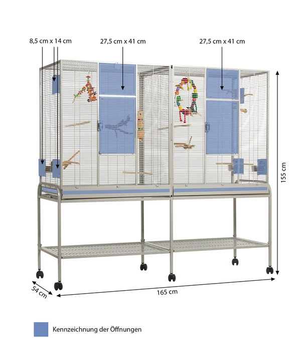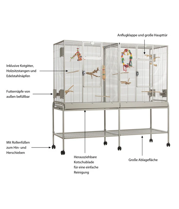 Vogelvoliere, mit Kotgitter und -schublade, Trenngitter und Zubehör, auf Rollen