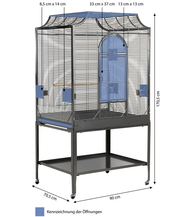 Vogelvoliere, mit Kotgitter und -schublade, auf Rollen
