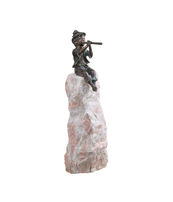 Die liebliche wasserspeiende Rottenecker Bronze-Figur Antonio auf Rosario, einem rosafarbenen Granit, wird in Ihrem Garten ein echter Hingucker sein. Antonio ist als kindliche Figur dargestellt und besteht aus hochwertigem Bronzekunstguss. Er sitzt auf der robusten und standfesten Granitsäule und gibt sich dem Flötenspiel hin. Der Hinweis Made in Germany stellt ein besonderes Prädikat dar für die detailgetreue Ausarbeitung der Rottenecker Bronze-Figur Antonio auf Rosario. Sie ist liebevoll von Hand gefertigt und durch die Frostbeständigkeit auch in den kühlen Monaten perfekt für den Außenbereich geeignet.