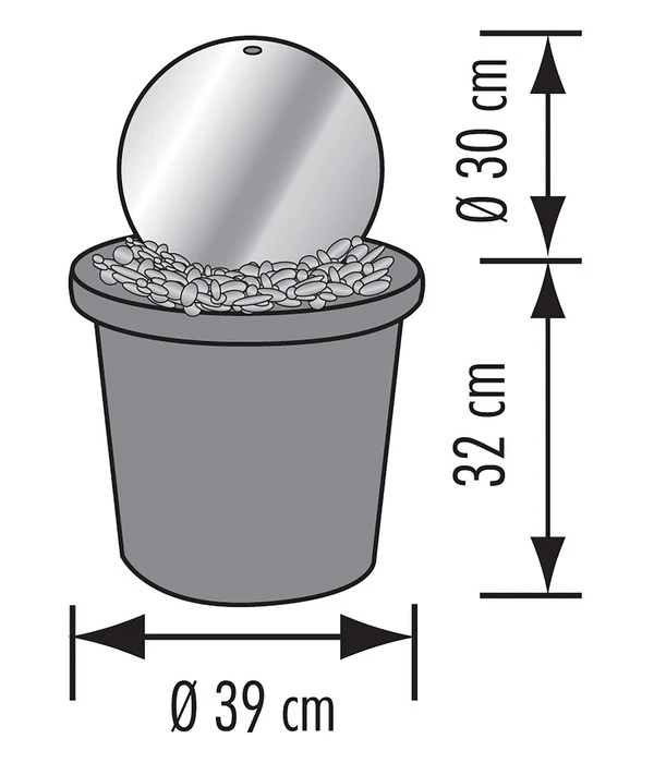 Bei dem Seliger Edelstahl-Gartenbrunnen Arctic handelt es sich um ein praktisches Komplettset. Das heißt, dass im Lieferumfang neben der Edelstahl-Kugel auch die passende Pumpe, die Bodenwanne aus wetterfestem PE-Material, die LED-Beleuchtung und das Abdeckmaterial gleich dabei sind. Tipp: Zum Kaschieren der im Boden versenkten Teile eignet sich besonders gut ein heller oder auch ein dunkler Zierkies.