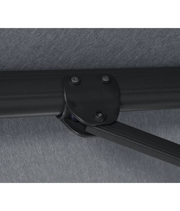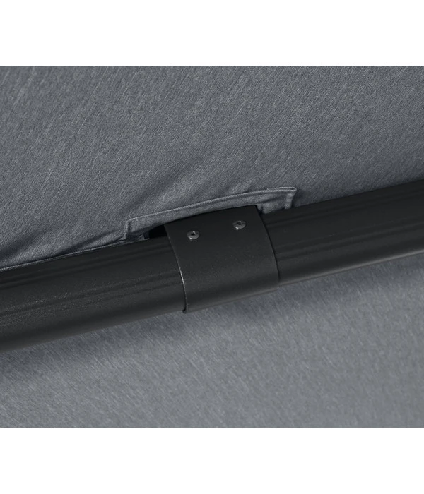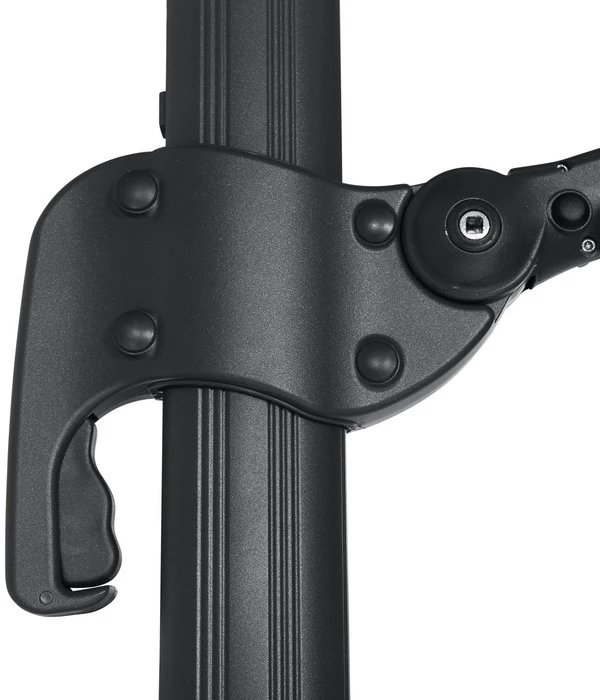 Gestell und Streben bestehen beim Siena Garden Ampelschirm Alphawing N+ aus leichtem, aber stabilem Aluminium, das durch eine hochwertige Pulverbeschichtung wetterfest gemacht wurde. Für den Schirm wurde eine feste Polyesterqualität (240 g/m²) gewählt, die schmutzabweisend ist und die Sie bei Bedarf aber auch per Hand waschen können. Ein weiteres Qualitätsmerkmal: Die Strebentaschen sind zur Fixierung des Dachbezugs extra verstärkt genäht. Doch auch die Bedienung des Ampelschirm gestaltet sich komfortabel: Der Sonnenschirm lässt sich mit Hilfe einer Kurbel leicht öffnen und schließen, mit der anderen Kurbel ist er beidseits um 45° schwenkbar. Außerdem verfügt der Siena Garden Ampelschirm Alphawing N+ natürlich über den ausgezeichneten Lichtschutzfaktor von 50+.
