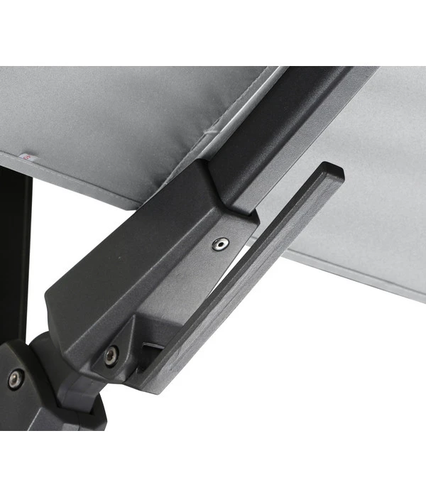 Frei und scheinbar schwerelos schwebt der Siena Garden Ampelschirm Sunset N+ zwischen Himmel und Erde und bietet Ihnen viele Schattenplätze unter seinem Dach. Dank der stattlichen Schirmfläche von 300 x 300 cm und dank des seitlich angebrachten Masts, der Sie den ganzen Platz unter dem Schirm uneingeschränkt nutzen lässt. Für den großen Terrassen-Essplatz, für die Liegestühle, für den Pool oder was immer Sie beschatten möchten. Aber die Sonne verändert doch fast stündlich ihren Stand am Himmel, sagen Sie? Kein Problem für den Siena Garden Ampelschirm Sunset N+, denn er dreht und neigt sich so, dass Sie nahezu immer seinen Schatten genießen können. Im Klartext heißt das: Sie können den Schirm mit Hilfe eines Fußpedals um 360° drehen, die Schirmfläche entlang des Masts 8-fach neigen und bei Bedarf mit einem Hebel beidseitig auch noch um ca. 90° schwenken. Dabei werden Sie optimal von einem Fußpedal und einer Kurbel unterstützt. Genießen Sie bald an schönen Sommertagen das angenehme Klima unter dem Siena Garden Ampelschirm Sunset N+!
