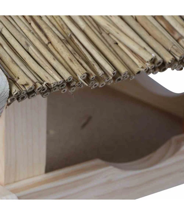 Mit dem liebevoll designten Siena Garden Vogelhaus Steinkauz sorgen Sie, dank des attraktiv mit vernetzter Heide gestalteten Dachfirsts, für eine gemütliche Atmosphäre in Ihrem Grünbereich. Das aus FSC-zertifiziertem Kiefernholz gefertigte Häuschen wurde für die lange Werterhaltung mit einer Holzbeize auf Naturbasis behandelt. Im Inneren bietet das naturbelassene Vogelhaus Steinkauz seinen Besuchern eine großzügige Fläche, auf der Sie Sonnenblumenkerne, Futterrosinen, Erdnussbruch oder andere Köstlichkeiten für hungrige Schnäbel anrichten können. Hier, unter dem großen, mit Reet gedecktem Dach, sind die gefiederten Sangeskünstler aller Art vor Regen oder Schnee in Sicherheit und fühlen sich sofort heimisch, wenn sie zu Gast sind, um die dargebotenen Leckereien zu schmausen.
