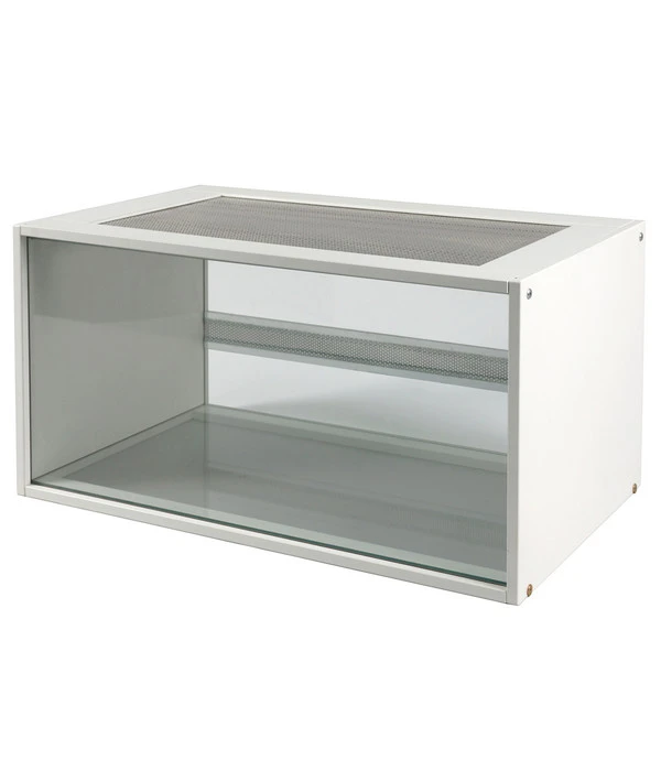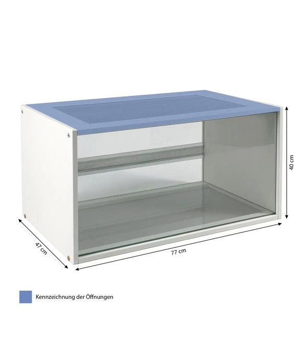 Mit dem Skyline Nagarium Marrakesch 80 bieten Sie Ihren Kleinnagern ein Nagerheim zum Wohlfühlen. Das Nagarium aus Echtholz und Glas sowie der Abdeckung mit Servo-Öffnung ist funktional und toll zugleich. Die Seitenteile vom Nagerheim sind aus Holz und die Boden-, Front- und Rückseite jeweils aus Glas. Für eine optimale Luftzirkulation sind die Abdeckung sowie die Glasrückseite mit Lochblechelementen aus Aluminium ausgestattet. Durch die komfortable Servo-Öffnung der Abdeckung wird Ihnen der Zugang zum Innenbereich leicht gemacht. Dies erleichtert Ihnen das Füttern, Reinigen oder das Einsetzen bzw. Herausnehmen Ihrer Tiere. Damit die alte Einstreu einfach und schnell ausgetauscht werden kann oder zur Reinigung vom Nagerkäfig, können Sie die Frontscheibe einfach nach oben herausziehen. Das Nagarium Marrakesch 80 von Skyline kann großzügig mit Einstreu befüllt werden und Sie können dann Ihre Lieblinge jederzeit durch die Glasscheiben beim ausgiebigen Graben, Wühlen und Buddeln beobachten. Noch mit Nagerzubehör wie Kleintierhaus etc. ausgestattet, werden sich Ihre kleinen Nager in diesem pflegeleichten und ansprechenden Nagerheim bestimmt sehr wohl fühlen.