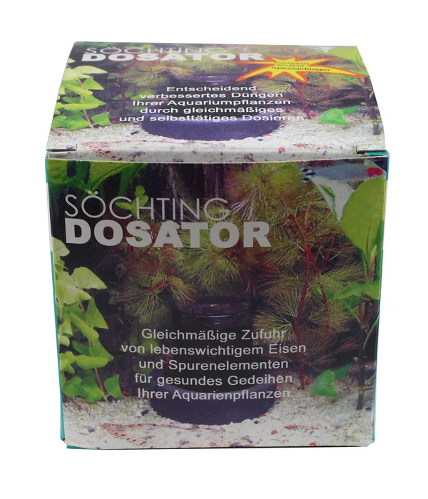 Damit Sie Ihre Aquariumpflanzen immer in voller Pracht genießen können, sollten Sie diese regelmäßig düngen. Um sich diese Aufgabe bestmöglich zu erleichtern, empfiehlt sich der Aquariumpflanzenpflege Dosator der Marke SÖCHTING OXYDATOR®. Der Düngeautomat eignet sich für alle Süßwasseraquarien mit einem Fassungsvermögen von bis zu 500 Liter. Er übernimmt selbstständig die andauernde Versorgung Ihrer Pflanzen mit Spurenelementen und Eisenionen. Diese sind sehr wichtig zur Bildung von Chlorophyll, was für die lebensnotwendige Photosynthese benötigt wird. Schon eine geringe Strömung im Wasserbecken durch den Filter reicht aus und der Dünger verteilt sich optimal in Ihrem Aquarium. Ihre Pflanzen werden es Ihnen danken und Sie mit Ihrem gesunden sowie vitalen Aussehen begeistern.
