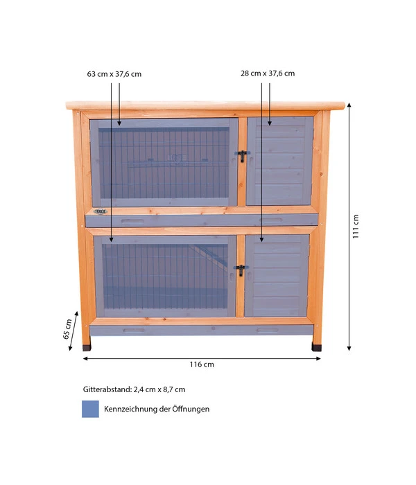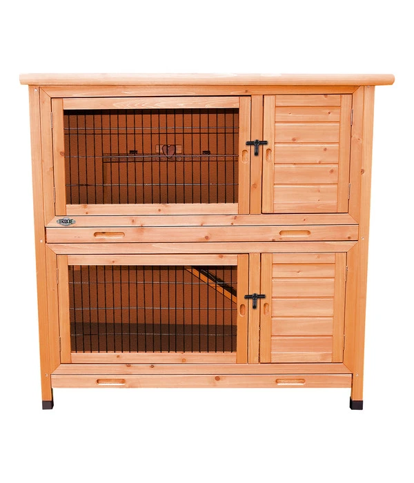 Für Kaninchen, die im Freien gehalten werden, ist das Nagerheim Natura VII von Trixie die ideale Lösung. Die lasierten Kiefernholzwände halten der Witterung stand und schützen die Tiere. Der Kaninchenstall eignet sich zur Zusammen- oder Einzelhaltung, da er aus zwei Ebenen besteht, die sich mit einer Rampe verbinden lassen. Ein weiterer Vorteil sind die herausnehmbaren Schubladenböden mit fest installierten Kunststoffwannen, dank derer sich der Kaninchenstall komfortabel reinigen lässt.