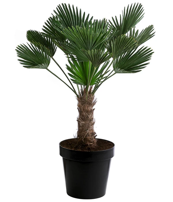Aus einem kräftigen, hohen Stamm ergießen sich fächerförmige, sattgrüne Blattwedel und verbreiten exotisches Flair – kein Wunder, dass Fächerpalmen zu den beliebtesten Palmen gehören. Was an sich schon fantastisch klingt, von der Wagners Hanfpalme aber noch getoppt wird. Als die kleinere Schwester der chinesischen Hanfpalmen bleibt diese extravagante Schirmpalme zwar etwas kleiner, erweist sich aber auch als deutlich robuster. Mit kürzeren Blattstielen und etwas kleineren Fächerblättern, die aber kompakter, ledriger und steifer sind und deshalb auch widerstandsfähiger gegen Wind und Wetter. Und mit einer maximalen Wuchshöhe von 5 m ist die Palme auch nicht gerade ein Zwerg. Sie fragen sich, was diese Palme mit dem berühmten Komponisten zu tun hat? Nichts, denn sie wurde nach dem Botaniker Janos Wagner benannt. Lassen Sie bald die Wagners Hanfpalme Ferien-Feeling in Ihrer grünen Oase verbreiten und entspannen Sie mit Blick auf die prächtigen Fächerwedel.